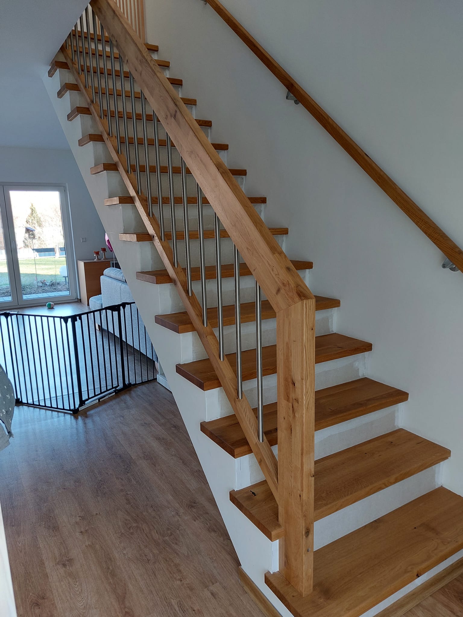 Mit einer individuell angefertigten Holztreppe verleihen Sie Ihrem Zuhause das gewisse Etwas. Ob moderne Treppen, klassische Designs oder außergewöhnliche Konstruktionen – wir realisieren Ihre Wünsche mit höchster Präzision und Liebe zum Detail. Jede Treppe wird mit einem passenden Geländer und/oder einer Brüstung versehen, um nicht nur funktional, sondern auch optisch zu überzeugen.